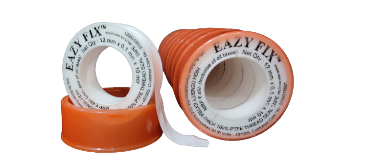 EazyFix is made up of premium quality 100% pure Teflon Tapes for sealing threaded joints & preventing leakage in various industrial applications. It is designed in such a way that it can seal basically all liquid & gaseous media for a long period. These PTFE thread sealtapes consist of all the detailed technical specifications & instructions to use. Each box contains a pack of 10 Pieces & each piece has been kept separated & organized inside the box.